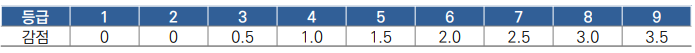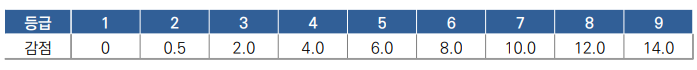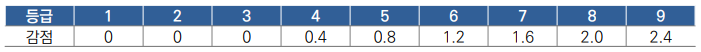 - 영어: 1등급은 감점이 없고 2등급부터 차등 감점됩니다.