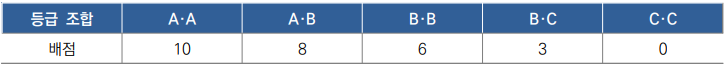 교과 평가 점수 = 2인 평가 등급 조합 + 30점