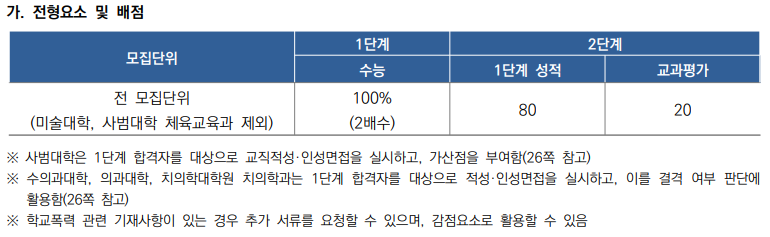 - 제2외국어/한문: 2등급 이내 감점 없습니다. 3등급부터 차등 감점됩니다. 수능 응시영격기준 유형 지원자에 한해 적용됩니다.