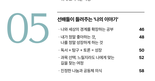 단, 고교 과정에서 지식이나 학문을 지나치게 편식하는 것은 지양해야 합니다. 어떤 분야로 진로를 결정하더라도 고교에서 배우는 모든 교과는 대학 생활을 넘어 사회생활에 기초가 되는 교양의 밑거름이 되기 때문입니다.