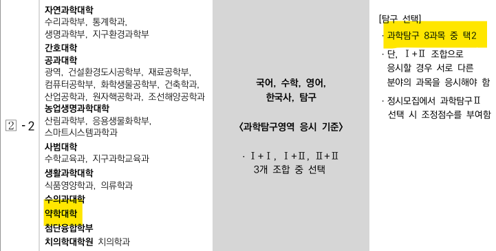 - 과학탐구를 응시해야만 하고 2개 과목 등급 평균을 반영합니다.