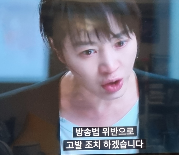 오소령(김혜수)은 방송사 KNS 사장 구형태 역을 맡은 배우 신정근에게 방송법 위반으로 고발하겠다고 말합니다.